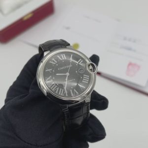 Silhouette ronde iconique avec couronne cabochon bleue protégée, cadran à chiffres romains et aiguilles bleuies. Présence chic et intemporelle, animée par une précision suisse fiable pour sublimer le quotidien comme les occasions formelles ✨.