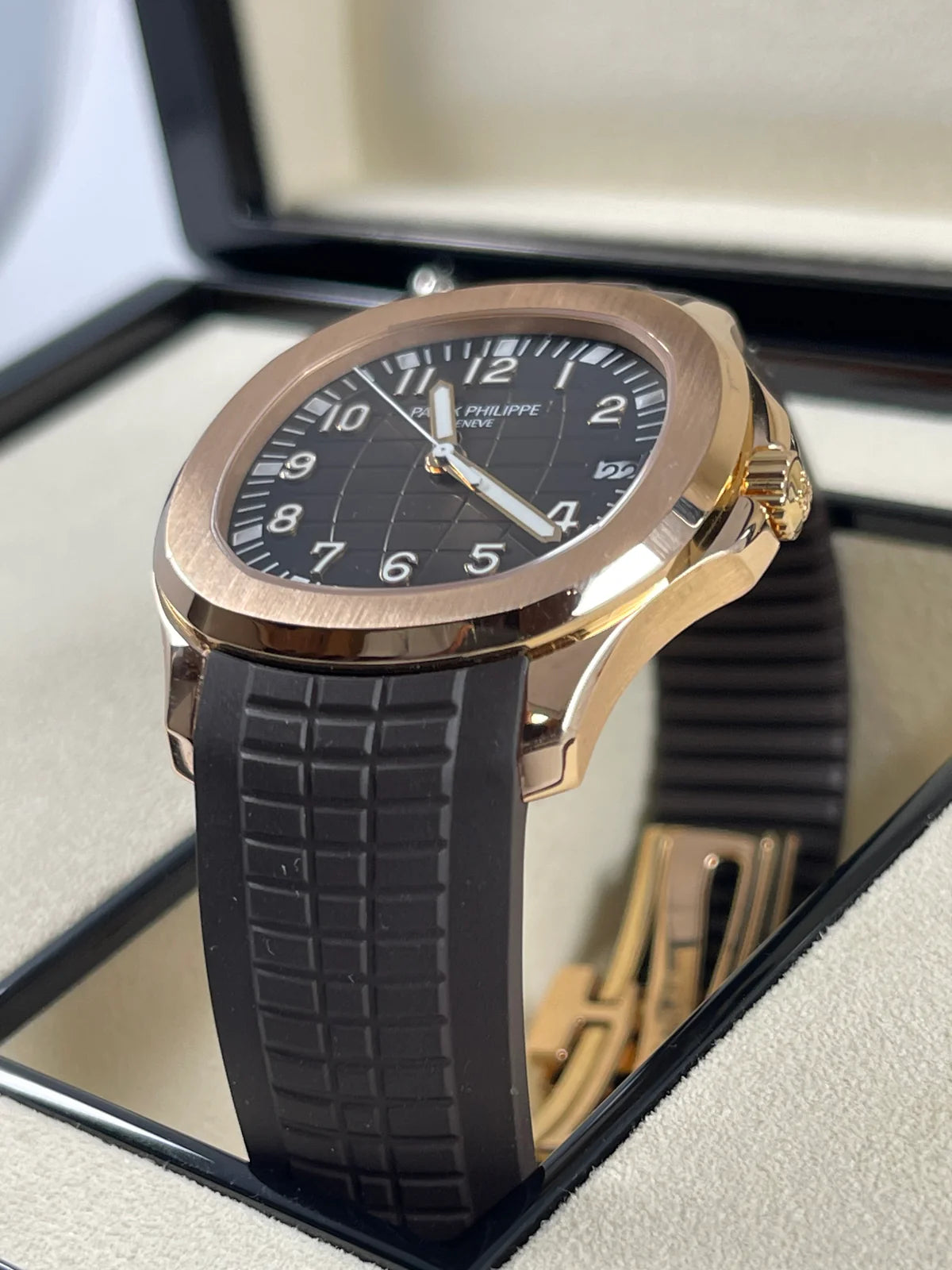 Le modèle Aquanaut 5167R-001, en or 18 carats, reflète parfaitement l’esprit luxueux et moderne de Patek Philippe, combinant élégance, performance et raffinement horloger.